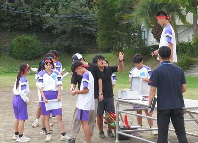 ☆入場行進はラジオ体操と計画にそって進められました。種目練習では、各係が担当の先生を交えて相談する場面も見られます。