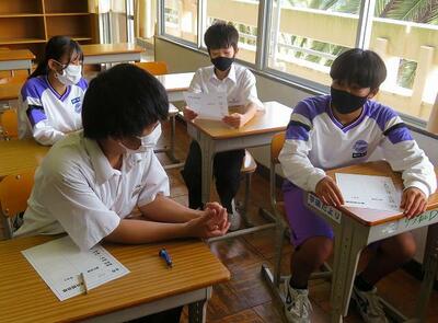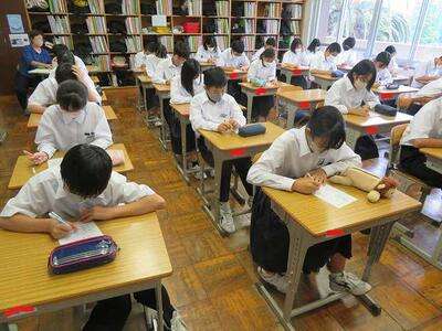 ☆8月31日(木)、生徒会役員本選挙に向けて学年内選挙が開催されました。立候補者は、独自の公約をみんなに訴えました。学校教育目標の「自信と誇りをもち」のところに重点を置いて全校生徒が自分に自信を持てるようにします。あいまいな校則を見直します。楽しい学校が1番、楽しめる行事を企画します。等々 学年選挙を勝ち上がった候補者は、本選挙に向けてさらにみんなを引きつける公約を掲げてくることでしょう。頼もしいです。