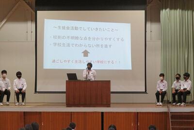 ☆昨日の1年生に続き、今日は2年生候補の応援演説が行われました。学校教育目標を意識している候補者もいてさすが2年生です。「長所探しコンテストをやります」「不明瞭な校則を見直します」といった興味を引く公約を掲げていました。応援者は、支持する候補者の優しさや責任感の強さ、学級委員としての実績などを一生懸命に伝えました。いよいよ明日、本選挙です。