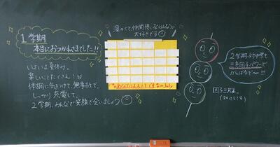 ☆8月25日(金)、2学期の始業式が執り行われました。各学級、担任が笑顔で登校してきた生徒を迎えました。担任からの温かいメッセージが黒板に書かれた学級もあり、生徒にも「2学期も頑張ろう!」とスイッチが切り替わったようです。