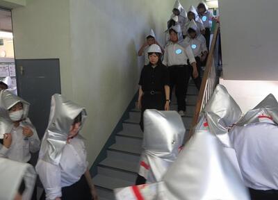 ☆9月1日の防災の日に合わせて、防災訓練と防災学習を実施しました。担当から防災の日の由来が伝えられました。大正12年9月1日に発生した関東大震災が教訓となっています。甚大な被害が出たこの大震災を忘れることなく災害への備えを促すため、防災の日が制定されました。
