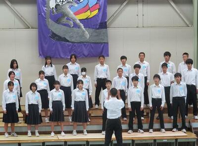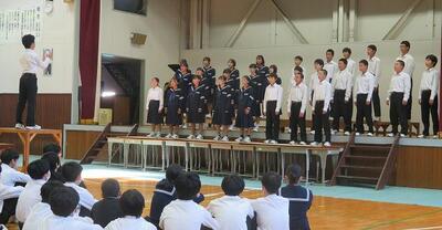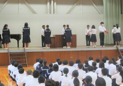 ☆合唱コンクールでは、どの学級も、これまでの練習の成果を存分に発揮しました。特に3年生は、男子の力強い歌声と女子のきれいな美しい歌声で会場を魅了しました。下級生はそんな3年生の姿に憧れたにちがいありません。