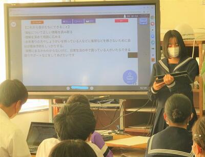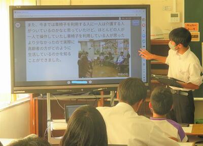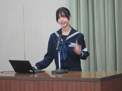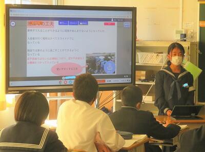 ☆英語スピーチコンクール市内準優勝者の発表は、表情が豊かで、プレゼンを操作しながらの見事なスピーチでした。