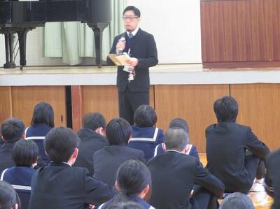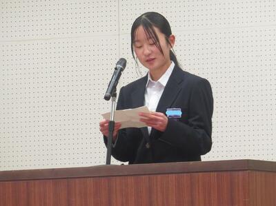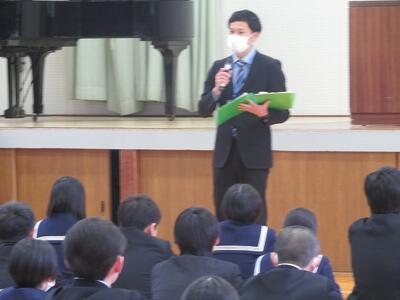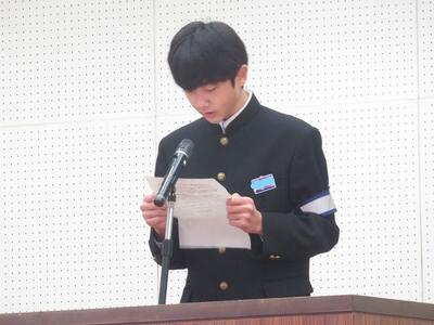 ☆代表生徒のスピーチでは、3学期は部活と勉強の両立を目指す。学級委員として、みんなが楽しめるクラスをつくる。来年は先輩になるので、先輩にふさわしい言動を身につける。